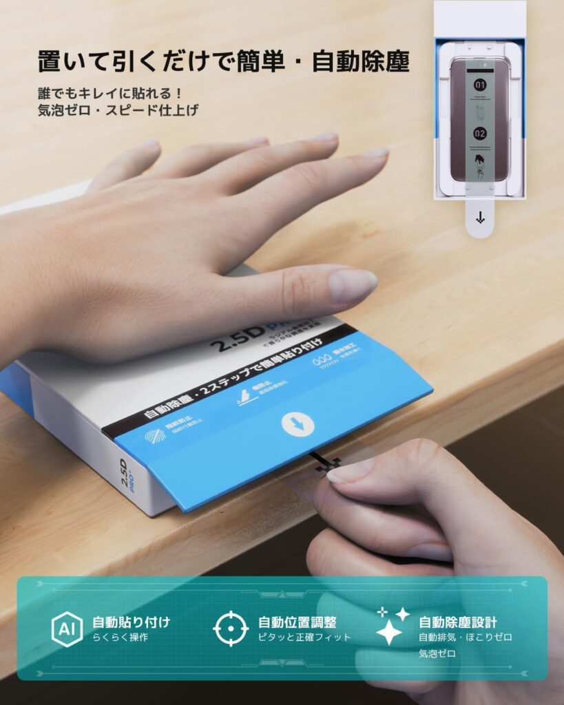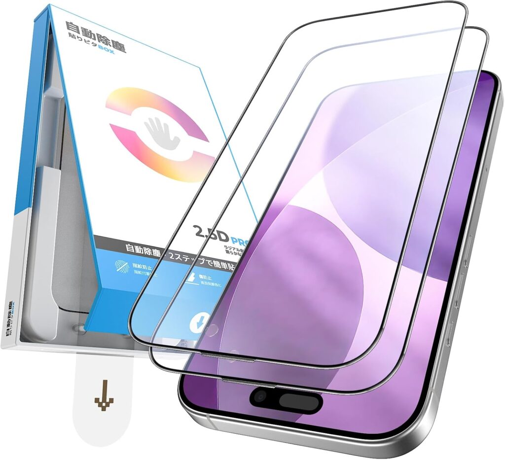 【簡単貼りピタBox/防塵網搭載】 iPhone用 ガラスフィルム