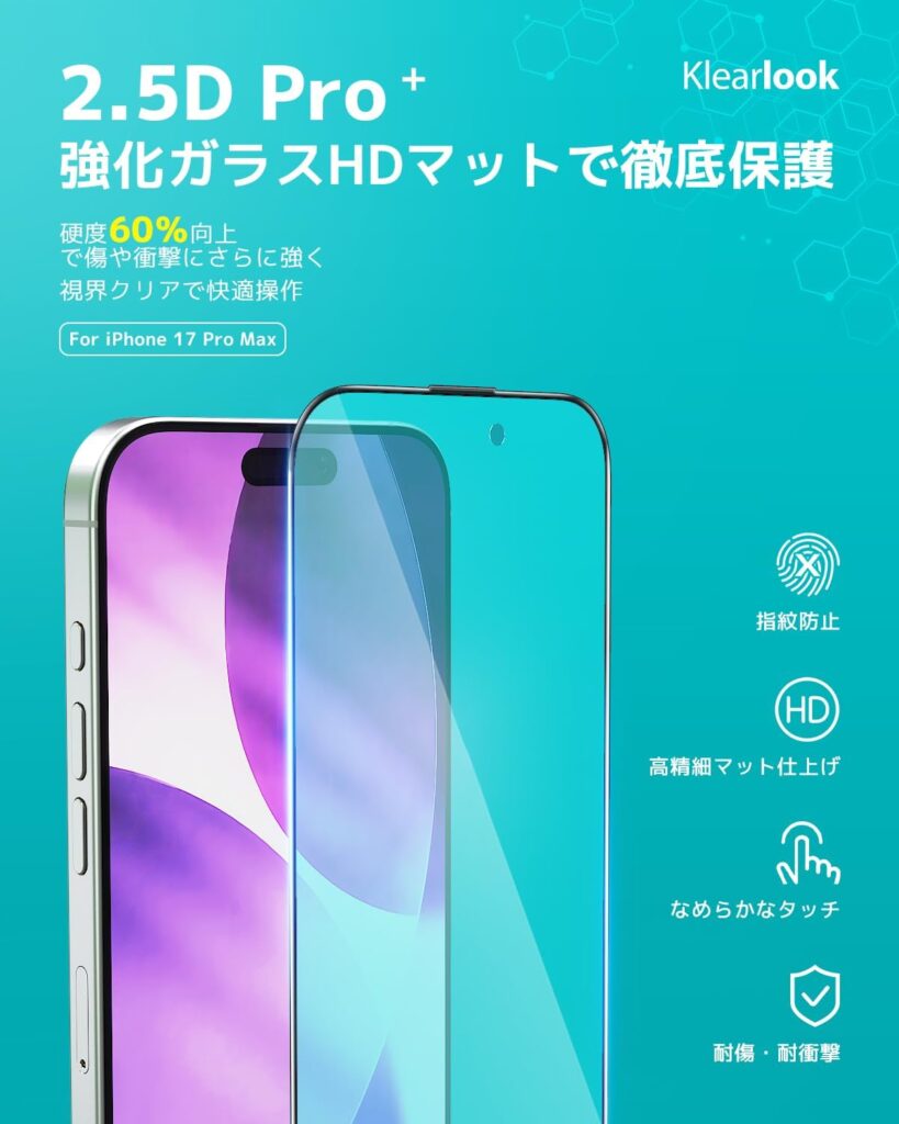 高強度強化ガラスを採用し、硬度9Hの高い耐傷性を実現。キズや軽い衝撃から画面をガード。エッジまで覆う全面設計で隅々まで保護。